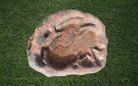 Gravestone in Vizag Blue granite from India gives a calm expression. Natural stone with a naturally rough surface.