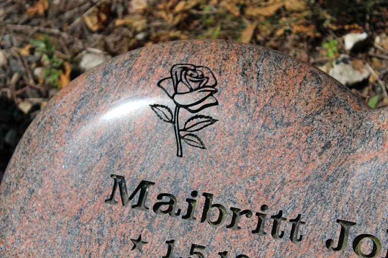 Gravestone in Vizag Blue granite from India gives a calm expression. Natural stone with a naturally rough surface.
