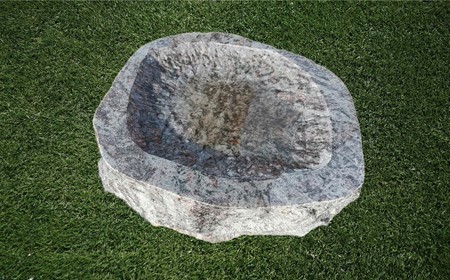 Gravestone in Vizag Blue granite from India gives a calm expression. Natural stone with a naturally rough surface.